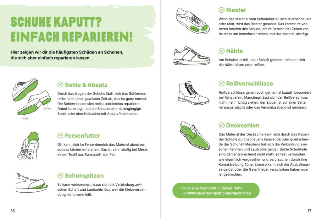 Schuhe begleiten uns oft über viele Jahre – wenn wir sie richtig pflegen und reparieren. Doch Wissen über Schuhpflege und einfache Reparaturen ist heute längst nicht mehr selbstverständlich. Genau hier setzt die Initiative Repair Your Pair an: Mit einer leicht verständlichen und praxisnahen Broschüre vermittelt sie Verbraucher*innen konkrete Tipps zur Pflege, Instandhaltung und einfachen Selbstreparatur von Schuhen.